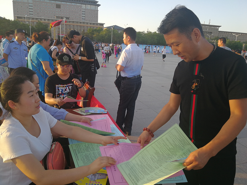 ? ? 活动期间,各级人社部门在老汽车站等农民工相对集中的场所,组织开展了专题宣传教育活动,现场发放《如何拒毒防毒》、《新型毒品常识》、《珍爱生命,远离毒品》等宣传资料660多份,工作人员结合当前毒情形势和农民工等群体的认知特点,向广大农民工朋友详细讲解了毒品的种类、吸食毒品的危害、如何防范辨别新型毒品等知识,使农民工等群体对吸食毒品的危害有了更深刻的认识。同时,我局还通过在人力资源市场大厅和社会保险服务大厅电子屏幕连续播放“炎黄子孙当自强,拒赌禁毒为中华”等一系列禁毒品宣传标语,鼓励群众从自身做起、从家庭做起,共筑拒毒防线,营造了良好的社会氛围。